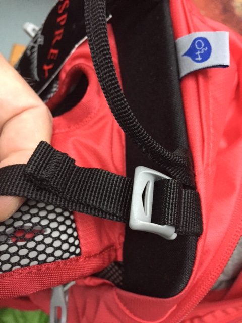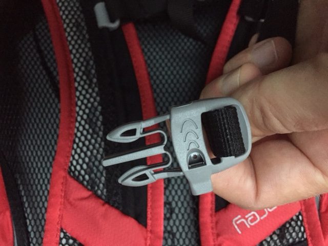 The chest strap is the same quality and slides easily but there isn’t an elastic loop to keep the surplus flat and out of the way. So in the wind the strap slaps you in the face, pretty annoying. There is a safety whistle.