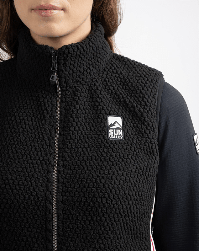An elastic trim encircles each shoulder, fitting the shape of each skier and providing a very classy finish. A similar trim is sewn along the bottom of the vest, tightening the product at the hips and limiting the thermal gap.