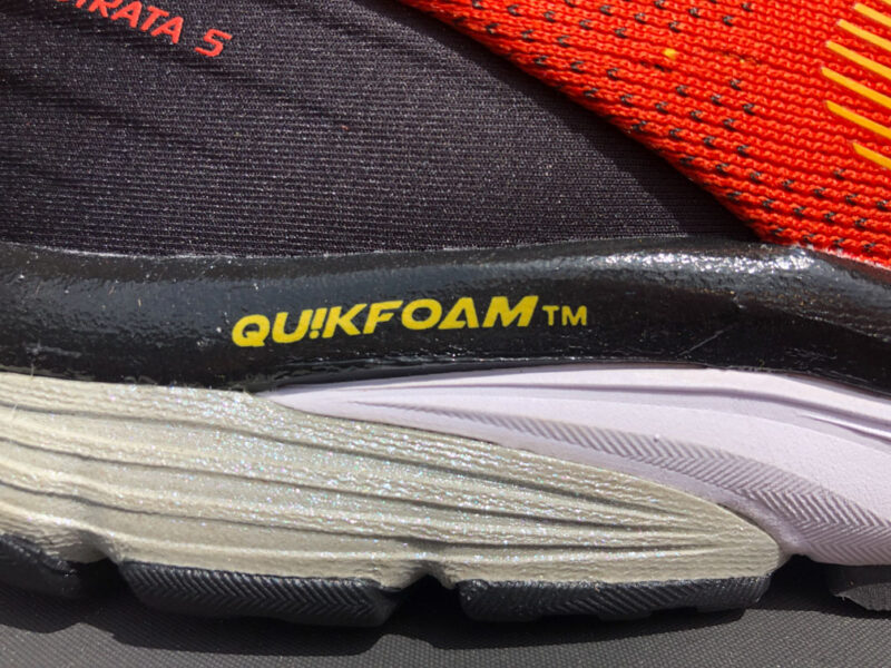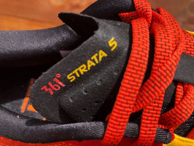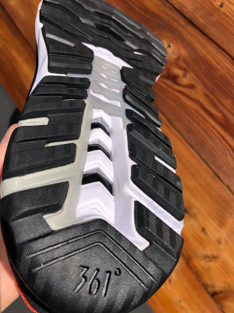 Grâce à sa semelle crantée, sa belle stabilité au sol, la 361° Strata 5 est également à l’aise sur les pistes, les « single » peu techniques. À noter, l’avant pied est légèrement protégé, pas tout à fait comme un pare pierres type « trail » mais l’idée est là. La semelle est conçue pour assurer un appui sain aux coureurs à tendance sur-pronateurs.