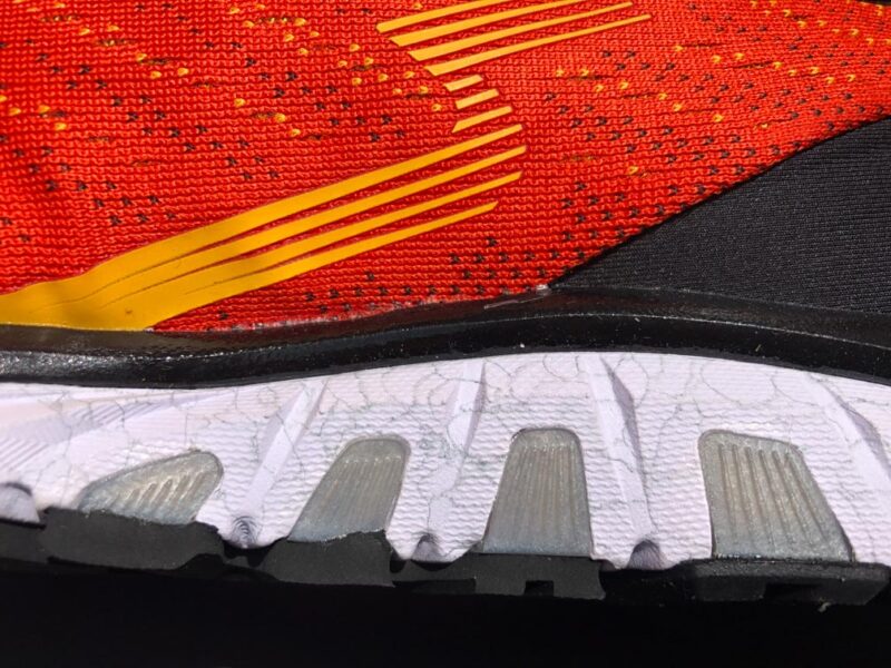 Le mesh a été modifié, il nous semble plus rigide que l’ancien, notamment au niveau des orteils : bien choisir la bonne taille pour éviter tout plis inconfortables dans cette zone.