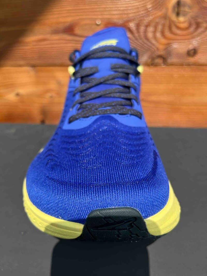 Le laçage est assez précis, il permet de maintenir le centre du pied au fond de l’Altra Torin 7, par contre, la zone avant des métatarses, fidèle à l’ADN de la marque, laisse beaucoup vivre le pied : tœ box très large.