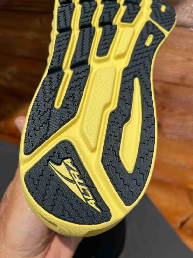 Sur cette Altra Torin 7 de route, on note le drop zéro, cote qu’il faut savoir gérer, idéalement en fore foot.