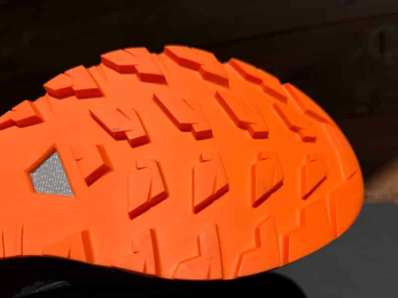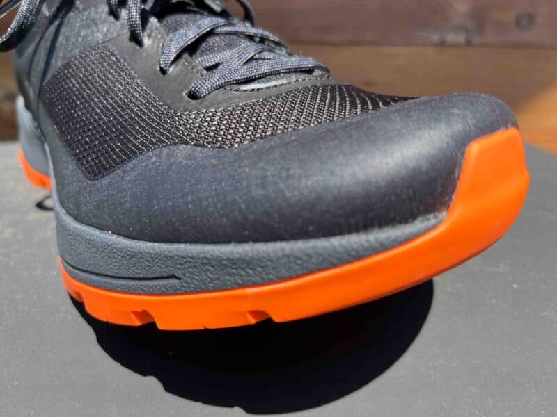 Le pare pierre est très bon, il est comme un bouclier. On note quelques plis du mesh sur l’avant pied, il faudra vérifier la solidité au niveau de la liaison avec le pare pierres.