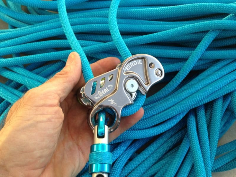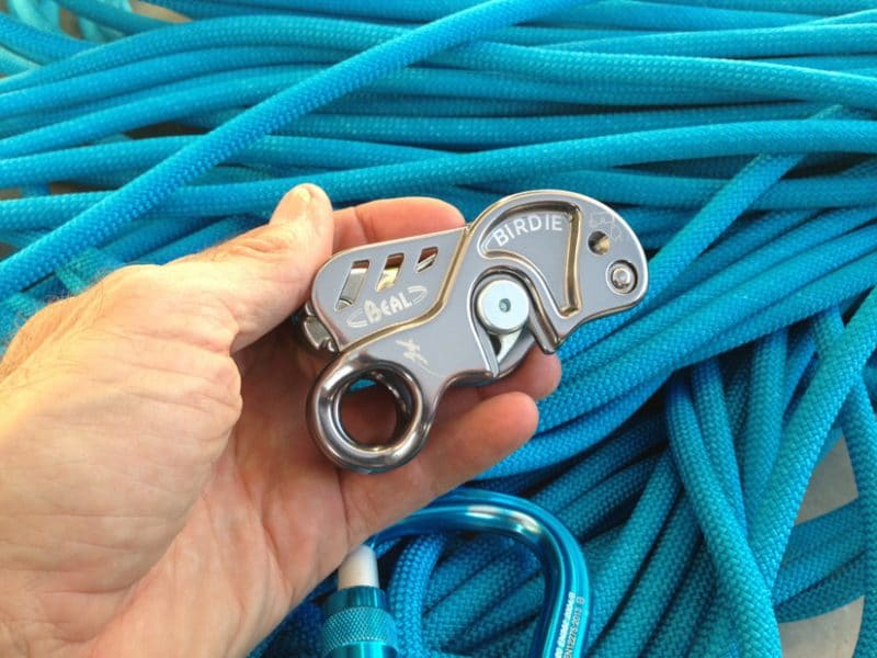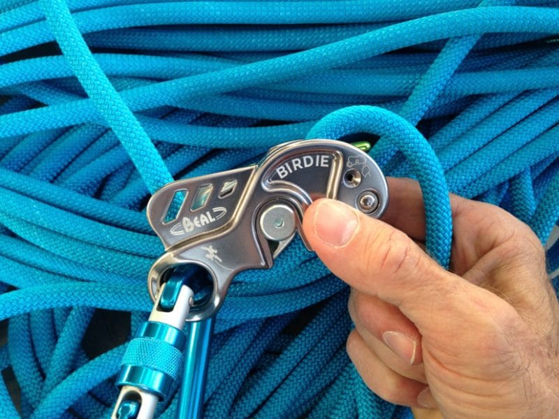 Le Birdie de Beal est un système d’assurage avec freinage assisté pour corde simple. On parle parfois de « système autobloquant », mais attention, l’action de la main qui bloque la corde sous le système est primordiale, en particulier si pour une raison ou une autre le système, de quelque marque qu’il soit, ne déclenche pas le freinage. Ce type de système reste néanmoins très sûr et apporte un véritable confort de sécurité au niveau de l’assurage.
