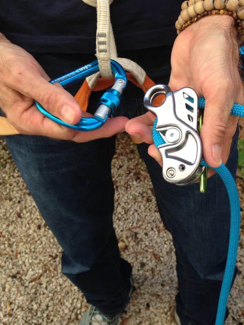 Pour l’assurage dynamique, avec ce type de système il faut une très grande habitude pour pouvoir le faire correctement, et encore, la plupart du temps le freinage est assez sec.
