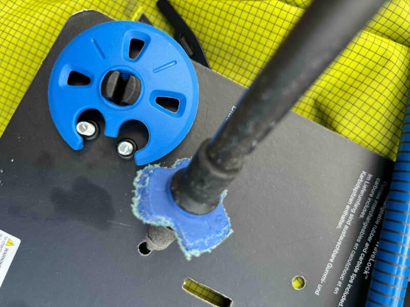 La poignée, si elle a l’air désormais classique, est un modèle du genre : confortable, ergonomique. La dragonne se règle en un tour de main. Le next step pourrait être d’améliorer l’appui de la main sur cette dragonne afin d’éviter les échauffements lors de la poussée à la montée (dragonne plus large dans cette zone).