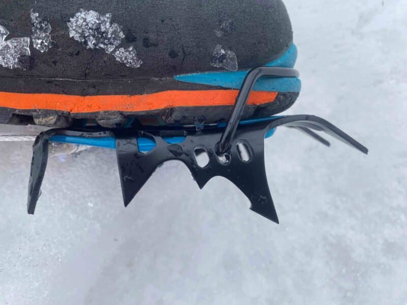 Le pointes acier avant et arrière sont plus longues que les Harfang ou Harfang Enduro par exemple. On découvre donc un crampon plus efficace et agressif dans les parties glacées et raides. Il est aussi efficace lors des traversées ou bien souvent ce type de crampons léger a plutôt tendance à se désaxer. Les bases « crampons » avant et arrière sont dotées d’un system anti-bottes TPU, qui peut être amovible si l’on recherche encore plus de légèreté.