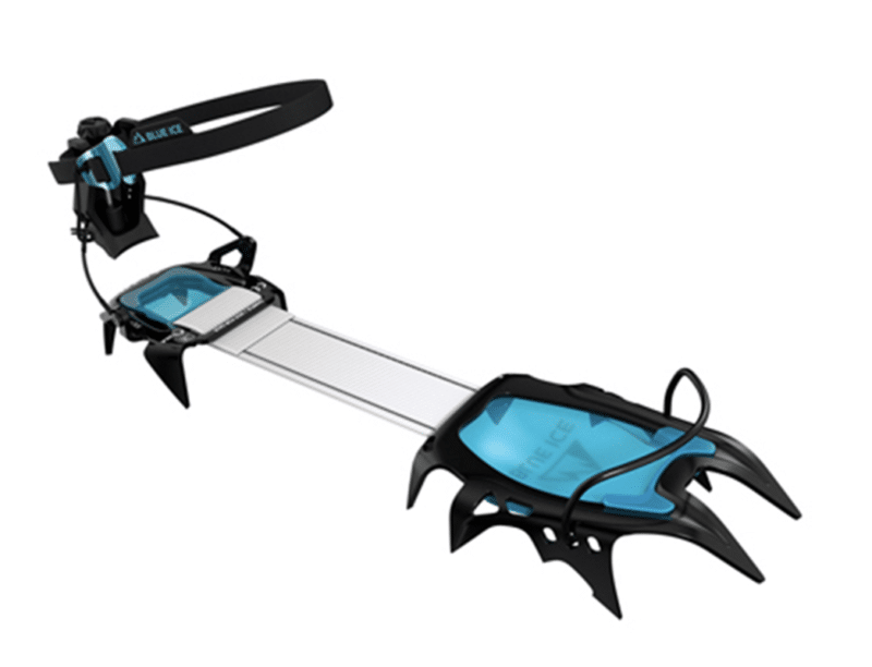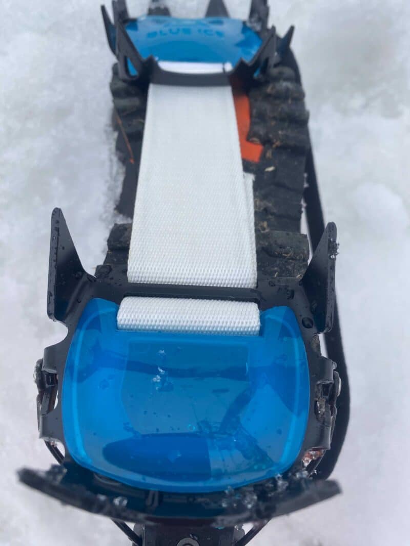 Les bases avant et arrière « crampons » sont reliées par une sangle centrale brevetée en polyester Dyneema comme les autres modèles de chez Blue Ice.
