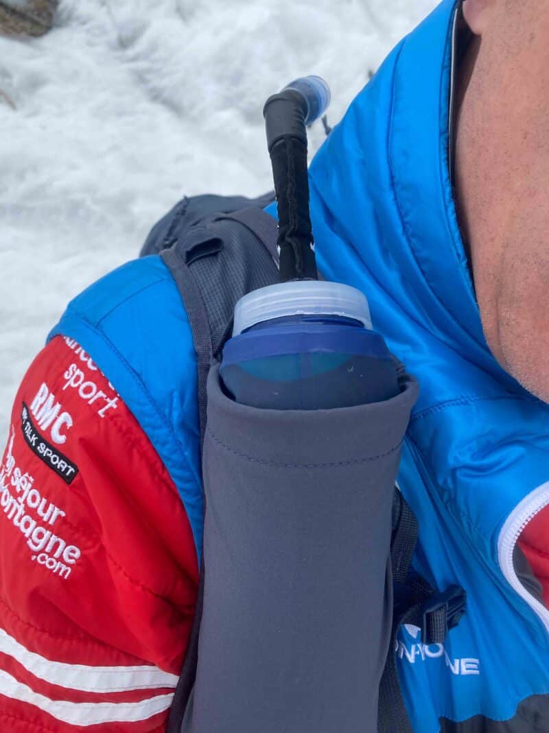 Chaque bretelle possède une sa poche de rangement en stretch. L’une pour le smartphone ou autre et l’autre pour une soft flask.