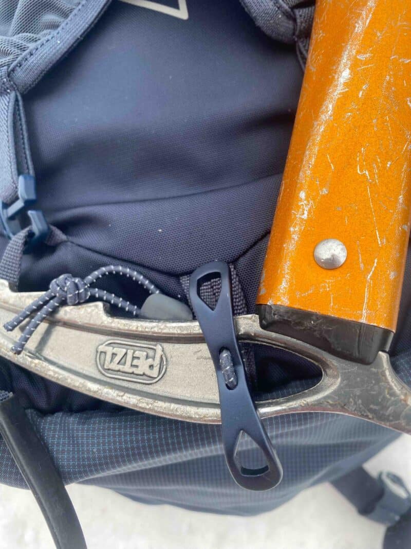 Le Taka est équipé d’un porte piolet. Il est vendu avec le porte-casque.