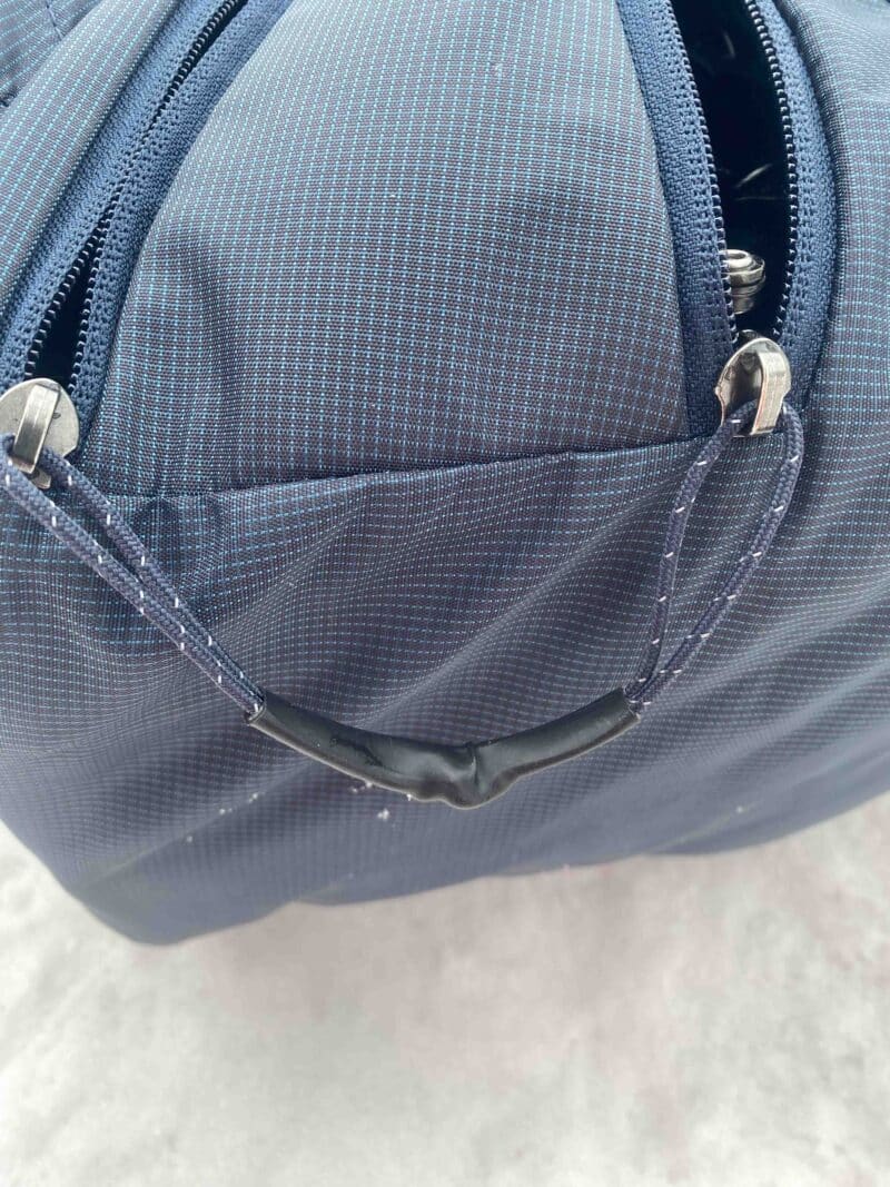 L’accès à la poche principale s’effectue grâce à un grand zip qui permet de voir en profondeur et qui facilite l’accès aux objets enfouis. Il est aussi possible d’accéder à la poche principale grâce à une ouverture sur le panneau dorsal. Il lui manque quelques centimètres pour faciliter totalement l’accès. Cette ouverture est de type « sac d’escalade ».