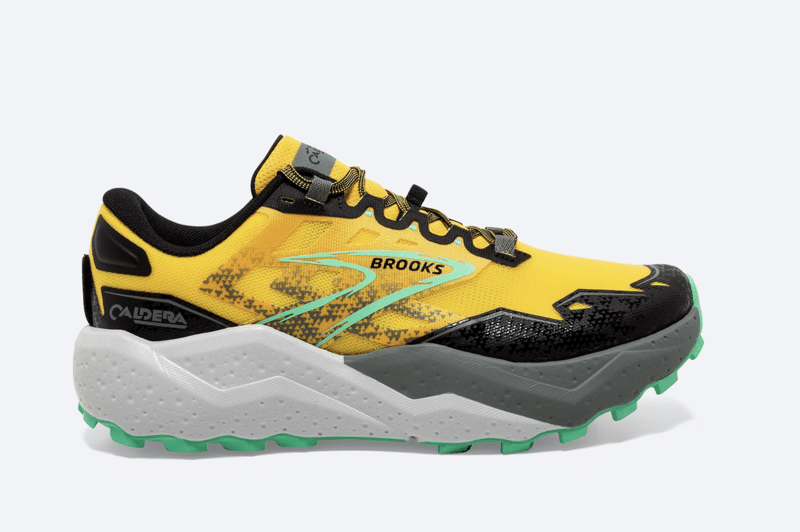 Elle est également confortable, d’un poids contenu (300 grammes constatés en taille 42,5). Cette Brooks Caldeira 7 appartient à cette famille de chaussures dont on ne sait pas si le relatif retour d’énergie est dû à la conception du châssis ou à l’effet rebond de l’amorti. On peut trouver chaussure plus réactive mais disons que cette Brooks Caldeira 7 possède la polyvalence pour s’adapter à la plupart des situations. On a aimé le pare-pierre très efficace sur l’avant, l’accroche sur terrain sec (traction puissante), le serrage du lacet. Ce dernier nécessite un double nœud obligatoire. Nous sommes un peu moins convaincus par le grip sur des zones rocheuses mouillées.