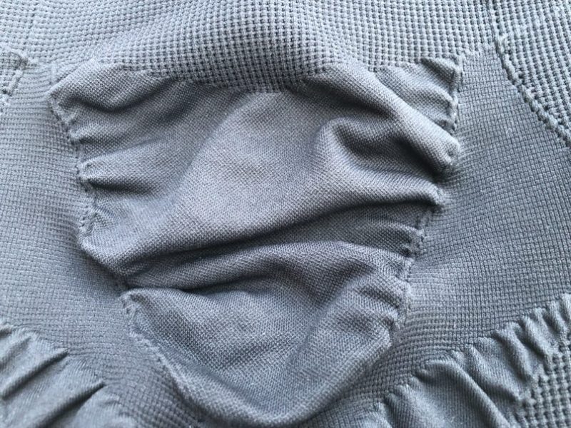 La zone des genoux est très douce, pas de serrage au niveau des tendons. Sur les cuisses, on remarque un grip en sillicone aux formes futuristes qui permet aux mains de ne pas glisser dans les montées. Ça ressemble à un détail mais c’est efficace.