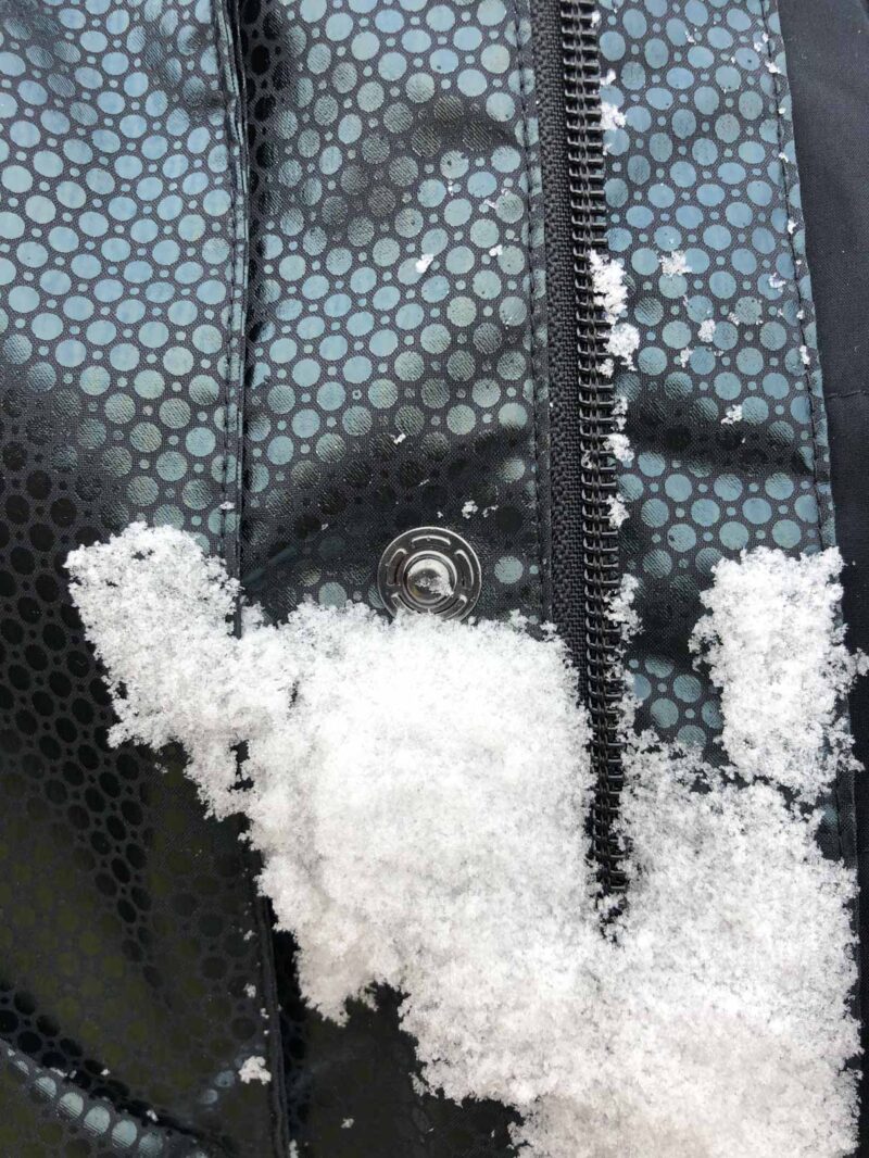 Au-delà de l’isolation thermique, l’autre point positif de la Columbia Dawn Watch Black Dot est son étanchéité. Le tissu est en effet étanche et bien entendu coupe-vent. La contrepartie ? La veste perd en respirabilité lors des efforts intenses : mais est-elle prévue pour cela ? Plus lourde qu’un produit en duvet (690 grammes en taille M), plus étanche, elle n’est pas spécialement bradée avec un prix public à 350 euros. À noter, son entretien est plus facile.
