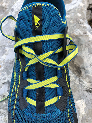 Respirante, dotée d’un solide pare pierres, la Columbia FluidFlex XSR est équipée d’un lacet très fin et plat : malgré les apparences, il ne glisse pas et ne nécessite pas forcément un double nœud. Son gros point positif : il coulisse dans les œillets et permet un serrage et un ajustage idéal.