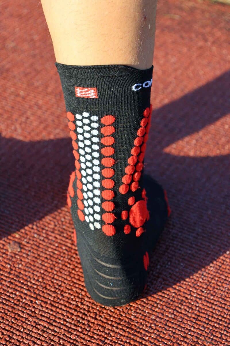 Le tissu doux est hyper agréable, d’un confort total pendant les sorties. Les points 3D sont encore plus doux et rendent le produit encore plus sympa à porter. À noter, il n’y pas d’étiquette sur ou dans la chaussette Compressport PRO RACING SOCKS V4.0 TRAIL.