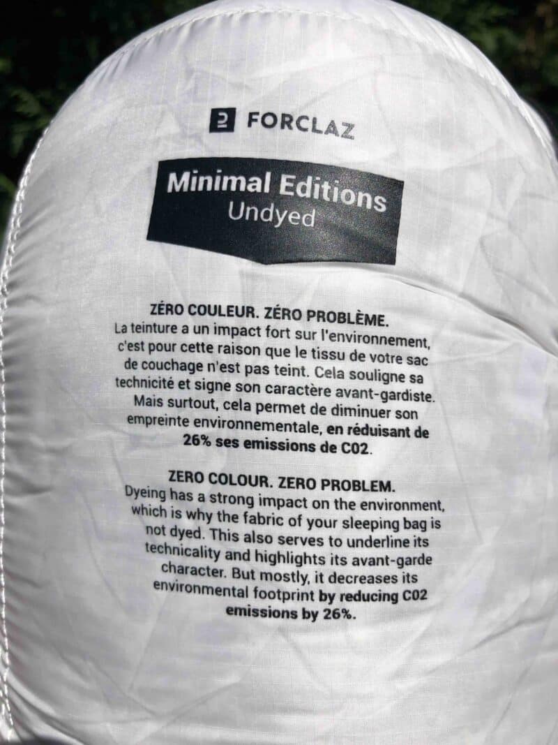 Le sac de couchage Décathlon Forclaz MT 900 Minimal Editions est un produit bien né, efficace pour les températures à partir de zéro et au-dessus. Sa particularité concerne l’absence de couleur afin de limiter son impact environnemental : la teinture est donc absente ce qui lui confère un look particulier.