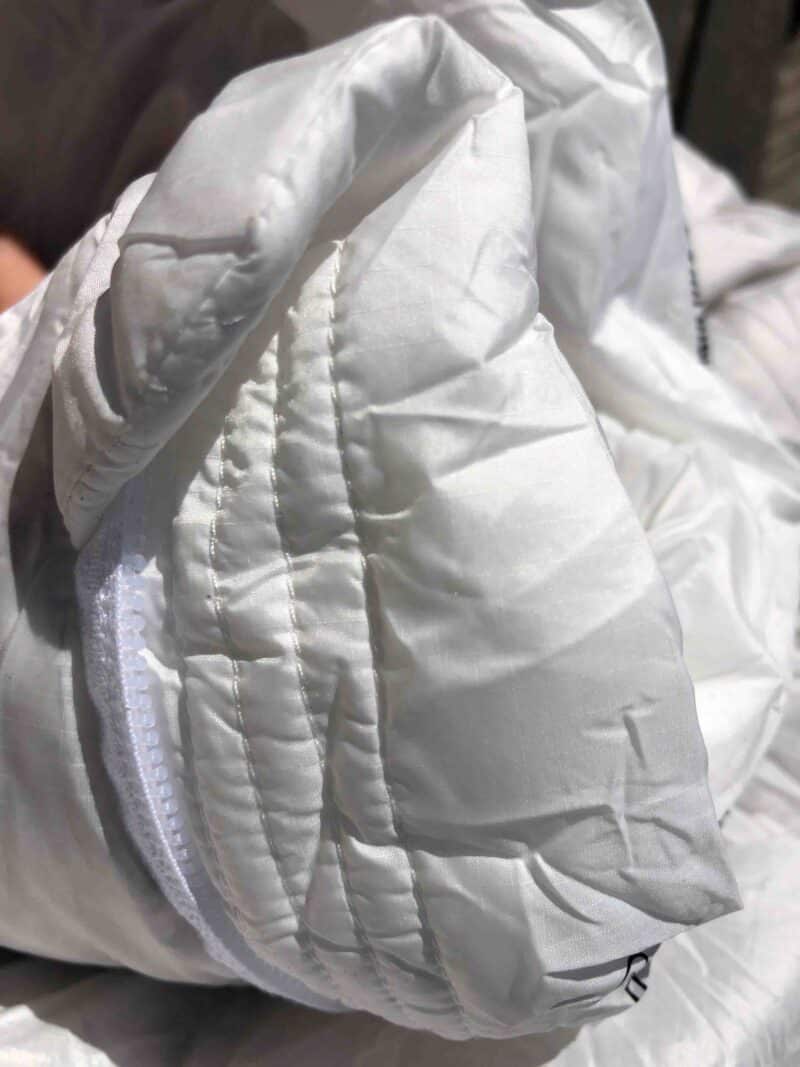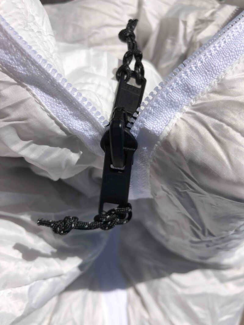 Dans le sommeil, on ne sent pas le zip. Ce dernier coulisse plutôt bien même si l’on peut noter quelques blocages sur le haut du sac.