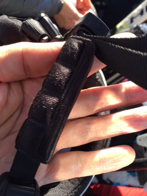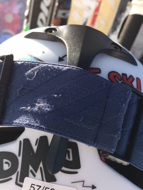 Le système de blocage du strap du masque, à l’arrière du casque, est basique mais néanmoisn efficace, rapide, simple d’utilisation et solide.