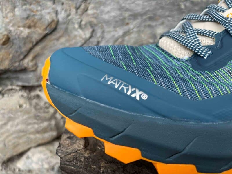 Sur l’avant pied, on est en contact direct avec le mesh Matryx que l’on aperçoit généralement sur des chaussures au prix quasiment double. Pour info, l’Evadict MT Cushion 2 Trail est proposée à 100 euros…