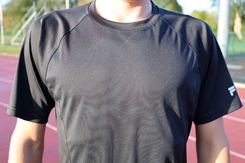 Doté d’un design assez discret, le T-shirt Fila Royan AOP est assez confortable pour la pratique de la course à pied. Ses manches, assez larges et amples pour sa taille (testé en M), permettent au tee-shirt de respirer un peu étant donné qu’il ne possède pas de technologie permettant une meilleure respirabilité. Les matériaux utilisés : polyester à 88%.