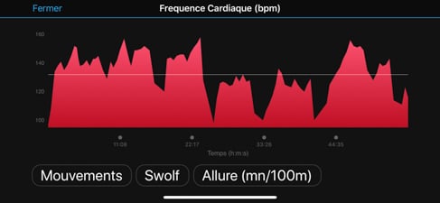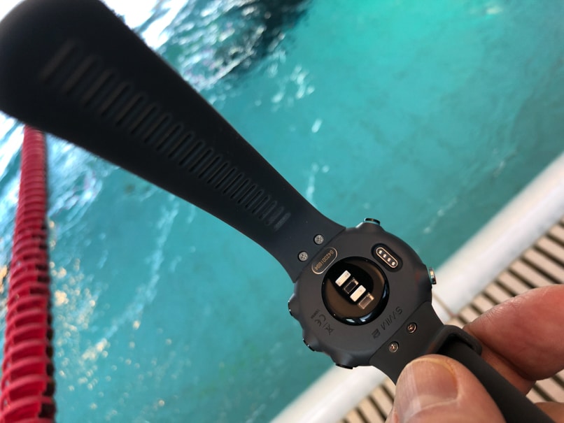 Dans l’eau, nous étions très sceptiques avec l’idée que le capteur de fréquence cardiaque puisse délivrer des informations fiables. Même si toutes ses mesures ne sont pas à prendre à la lettre, force est de constater que les valeurs annoncées sont proches de celles d’une ceinture cardio. C’est donc une qualité non négligeable à prendre en compte lors de l’achat, pour quelqu’un qui veut affiner son entrainement et définir des seuils. Pour encore plus de précision, on peut acquérir la ceinture Garmin cardio-fréquencemètre HRM Swim™. Les données sont enregistrées puis consultables lors de la sortie de l’eau.