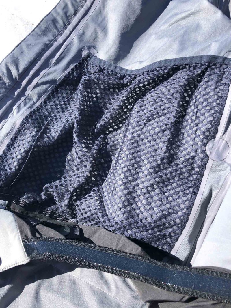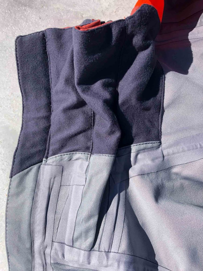 La hauteur du cou, son volume sont bien étudiés pour accueillir des épaisseurs de vêtements supplémentaires et protéger du vent efficacement. On note un deuxième zip vertical qui permet d’augmenter encore le volume du cou, c’est extrêmement pratique et facile d’emploi. Grâce à l’empiècement de confort (fine polaire), le contact avec le cou reste doux.
