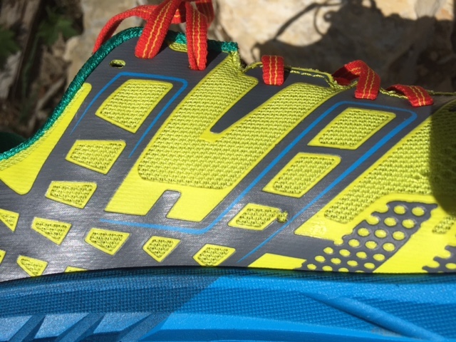 La chaussure relance bien, sans être la plus puissante du marché, déroule de manière fluide (pas de point dur). La rigidité en torsion est conforme à ce que l’on peut attendre d’une chaussure de trail. Les coureurs dont l’appui est plutôt pronateur devront surveiller le vieillissement de la mousse de la semelle qui se tasse rapidement. Certains fabricants ont avoué que la durée de vie d’une chaussure de trail est de 500 kilomètres : combien pour la Hoka ?