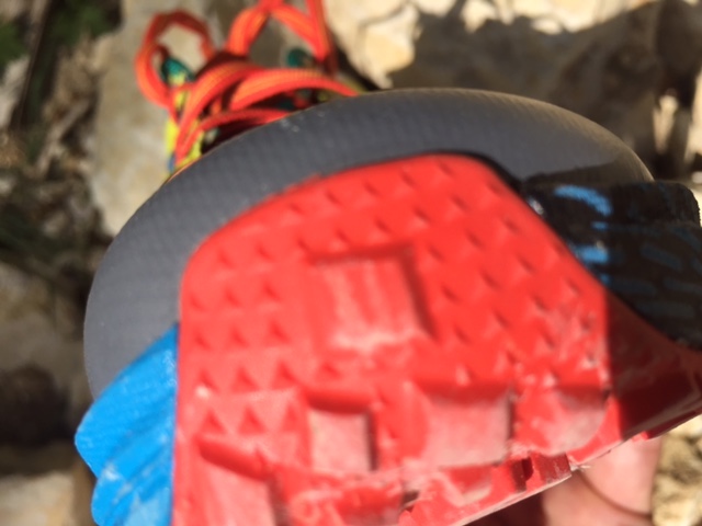 Le pare-pierre est encore léger pour une chaussure de trail, les plastiques un peu « tendres » pour assurer une protection 100% efficace.