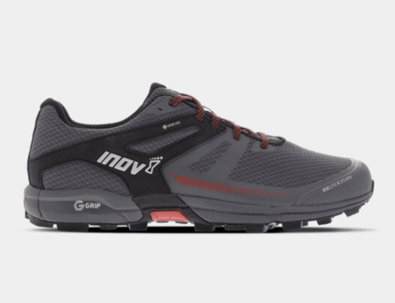 La Inov8 Roclite G 315 GTX V2 est équipée d’une membrane Gore-Tex pour l’étanchéité (pour la respirabilité, c’est mieux sans). Le design général est un peu tristounet.