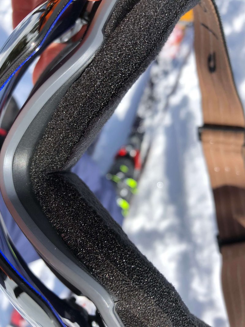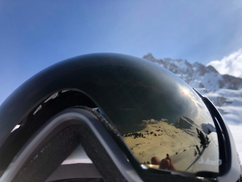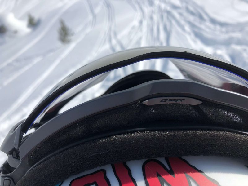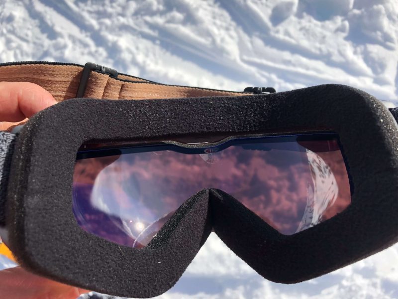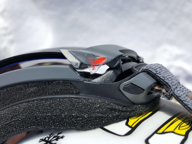 Quand on porte le masque avec le verre en position ouverte, on note des reflets à l’intérieur du verre mais rien de réellement embêtant. Attention, dans cette configuration, il est plus sujet aux rayures (les bords en plastique ne le protègent plus). Pour limiter l’entrée d’air, on peut aussi choisir d’ouvrir un seul côté. On a même essayé de le skier ouvert, il émet un léger sifflement mais ce n’est pas très confortable car on voit les contours noirs du verre.