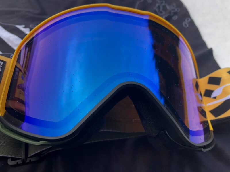 On a aimé le fait que sous des dehors de masque frameless, Julbo a conservé une fine couche de plastique sur le haut et le bas de l’écran (non bombé) : ça évite de rayer le masque quand on donne un coup de tête dans ses skis, quand on les porte verticalement lorsque l’on fait la queue au téléphérique…