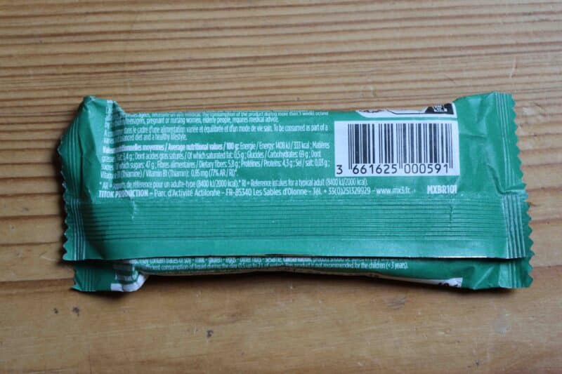 Le goût de la barre énergétique MX3 Nutrition n’est pas puissant, le goût est bien présent mais il ne paraît pas artificiel, une excellente chose. Il n’y a officiellement pas d’ajout de sirop de glucose par exemple ou autres additifs chimiques. La provenance des ingrédients n’est pas formulée.