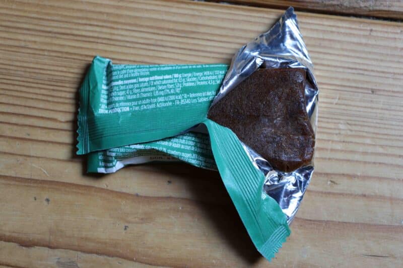 Cependant, il est difficile de la consommer en courant, elle est longue à mâcher, et quand on court, ce n’est pas pratique. Pour digérer une barre énergétique de 37 g contenant 27,4 g de glucides (Fraise-Basilic) et 22,9 g de glucides (Miel-Amande), c’est quasi impossible en termes de quantité, sans compter la digestion… Il faut donc être arrêté pour la manger mais là encore pour la digestion c’est complexe, on repart et on a très vite des sensations désagréables côté estomac.