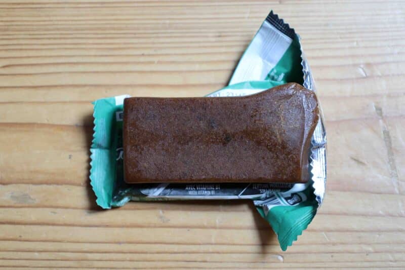 La texture est agréable à mâcher, la barre est souple. Il faut juste y aller étape par étape, petit à petit car cela demande du temps pour la mâcher, on la mange en trois ou quatre fois.