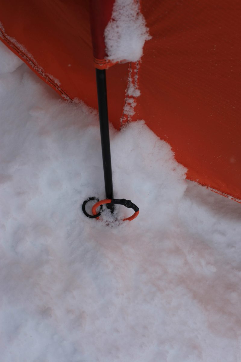 Dans la configuration où nous étions, avec un igloo pour repas et cuisine, donc sans besoin d’abside pour les réchauds, ce système nous a permis de jouir d’un espace de vie immense, bien agréable lorsqu’on est coincé au camp deux semaines durant.