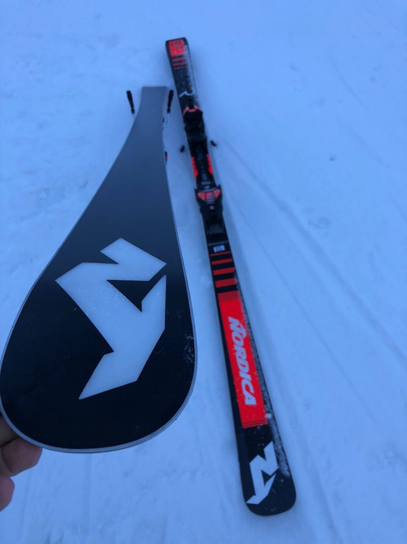 Le Nordica Dobermann GSR RB Fdt affiche une belle qualité de fabrication. On adore l’insert métallique représentant le Dobermann… Très beau design également de la spatule.