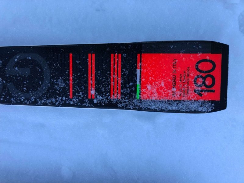 Il se met quasi automatiquement en appui coupé et emmène dans de grands virages taillés au millimètre. Son rayon : 19,5 mètres en taille 180 cm. L’aiguille de la vitesse monte très rapidement et il faut des jambes pour suivre, un bon moral aussi… et une piste bien préparée !