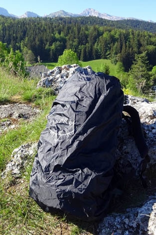 Sous le sac, on trouve la poche «rain cover» avec un zip pour y accéder. Le rain Cover enveloppe parfaitement le sac.