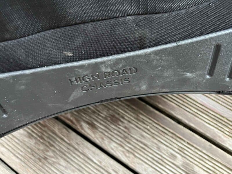 Son principal atout réside dans son système de roulage : les roues sont largement proportionnées et n’ont pas donné de signes de faiblesse sur les terrains que nous avons rencontrés, macadam, terre, sable, trottoirs.