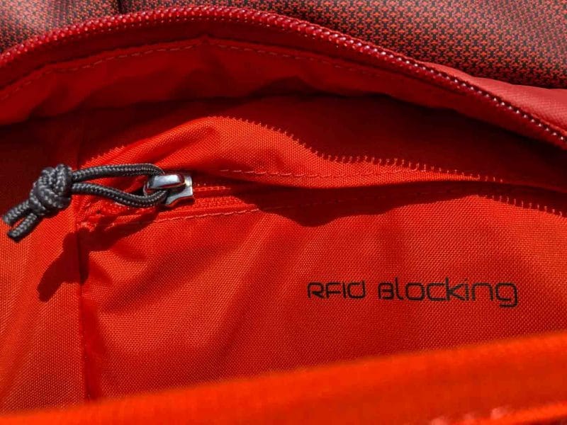 On a beaucoup aimé la poche dédiée aux magazines (écouteurs et chargeurs divers), très pratique lorsque l’on est dans l’avion et que l’on veut trouver immédiatement de quoi lire sans déballer tout le contenu du sac. Le compartiment de l’ordinateur est équipé d’une petite poche zippée dans laquelle on peut sécuriser ses papiers et/ou son argent. Cette pochette n’est pas accessible une fois le sac sur le dos, ce qui limite l’action des pickpockets.