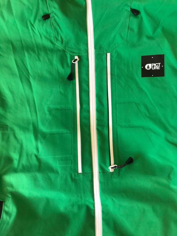 Le système pour relier le pantalon et veste fonctionne plutôt bien, si l’on a besoin de cette option. Nous avons testé cette Picture Organic Harvest jkt avec le pantalon de même marque et de même nom : Picture Organic Harvest Bib.