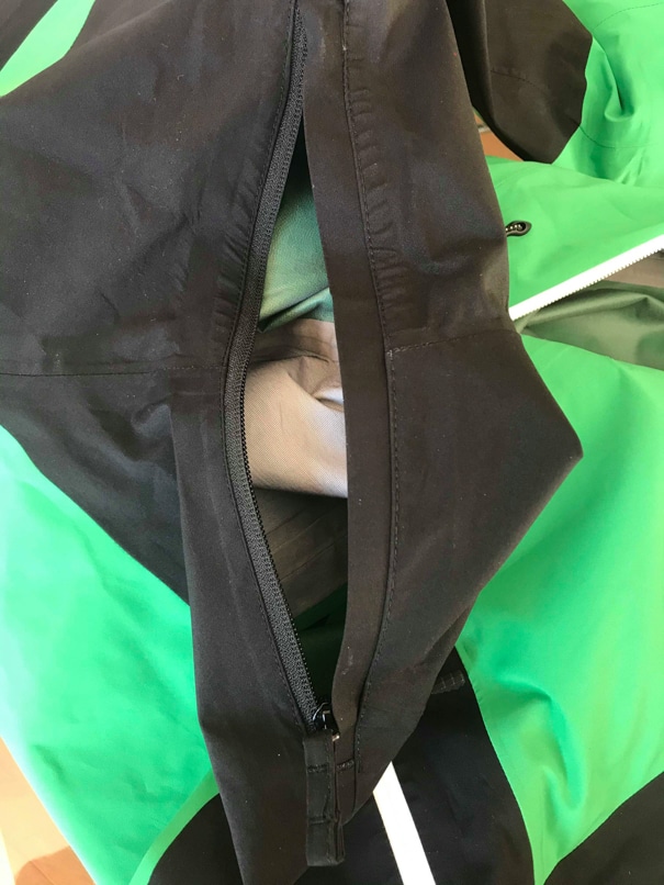 Ses coutures sont entièrement cousues-collées. Ses zips YKK sont étanches pour empêcher à l’humidité de pénétrer. Des zones tricotées ajoutées aux ventilations zippées sous les bras offrent une thermorégulation ciblée. On aurait aimé que les ventilations zippées sous les bras soient un peu plus grandes et quelles bénéficient d’une double fermeture éclair pour en faciliter l’ouverture.