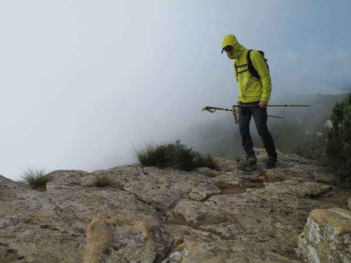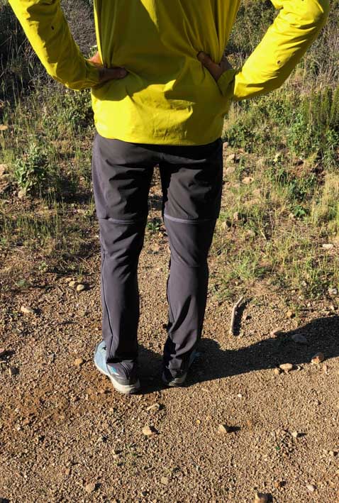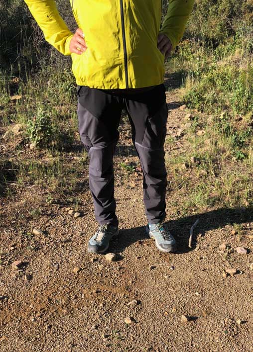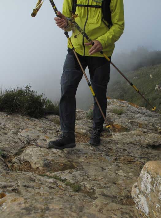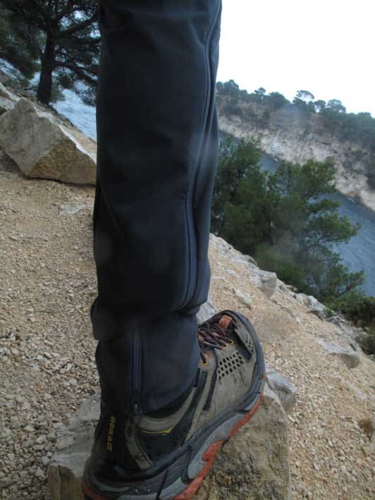 Nous avons mis ce nouveau modèle à l’épreuve dans une série de randonnées classiques et une du vertige avec baudrier. Première approche, le Quechua MH950 a un bon look ; couleur sobre, coupe slim, qui se resserre sur le bas des jambes. Il est confortable avec son tissu léger et extensible, ses genoux préformés. On se sent bien dedans. La coupe slim et le tissu strech permettent d’avoir un pantalon avec une ergonomie qui suit bien le mouvement, qui colle aux jambes sans être moulant. On voit ses pieds, on est précis, un avantage en terrain chaotique, en grimpe.