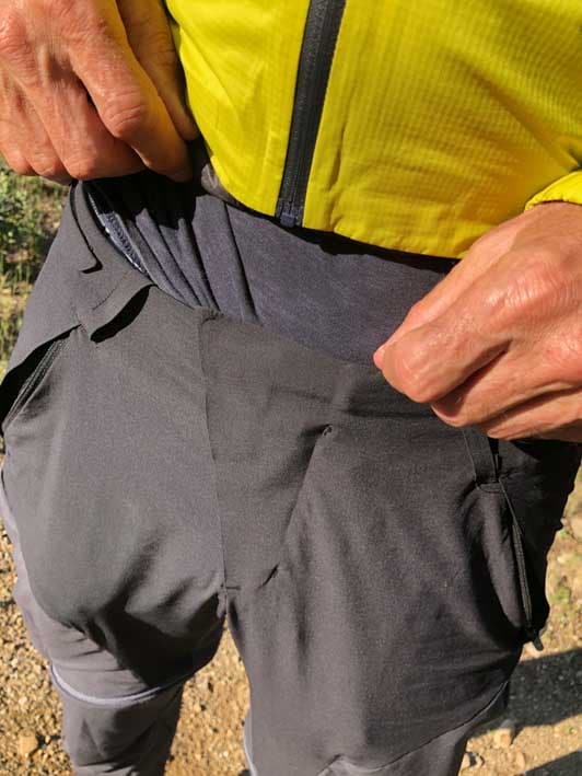 Un short bien proportionné, agréable, aéré, qu’une bande de tissu souple aux niveaux des cuisses vient parfaire pour une bonne tenue.   Les deux poches avec les parties repliées, qui font un peu boules au début, se tassent rapidement et disparaissent quasiment visuellement. Pour repasser en mode pantalon, la même chose dans l’autre sens. Ce système est très bien pensé, vraiment très pratique. Simple et pratique, il ne transforme pas le pantalon en usine à gaz avec des Zips ou des scratchs. A voir seulement comment le Zip et les poches de replis résistent au vieillissement.