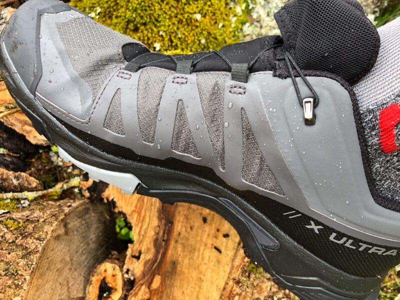 La Salomon X Ultra 4 Gore-Tex dégage une impression de robustesse qui sera à confirmer sur un essai long terme. Les renforts sont bien présents, les coutures qui sont autant de zones d’usure sont discrètes et la zone de pliure du mesh renforcée. Le pare-pierre est imposant. On aime le relevé en talon qui facilite grandement le chaussage d’autant plus qu’une sangle très pratique et bien proportionnée (le doigt passe facilement dedans) aide à la manœuvre.