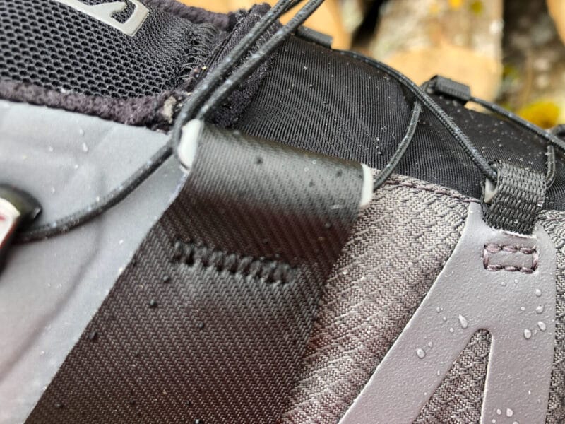 Le nouveau châssis de cette chaussure est secondé par le Quicklace qu’il faut manier avec finesse afin de ne pas trop mettre de pression sur le cou-de-pied : sinon on finit par sentir la présence des œillets sur la zone à l’intérieur du pied. Il faut tirer sur la languette afin de bien dégager la pochette de rangement du Quicklace. Attention, on ne sait pas si Salomon a anticipé le fait que certains marcheurs utilisent des chaussettes plus épaisses mais la Salomon X Ultra 4 Gore-Tex taille grand, au moins une demie taille. Du coup, on a noté un peu moins de pincement au niveau du talon, avec un pied qui aurait pu être un peu plus maintenu dans cette zone. Avec une taille appropriée, ce très léger flottement devrait disparaitre.