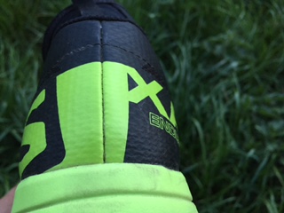 Le talon est bien maintenu et dans les descentes le pied ne glisse pas grâce aux cinq œillets de lacet qui répartissent bien la pression et plaque le pied au fond.