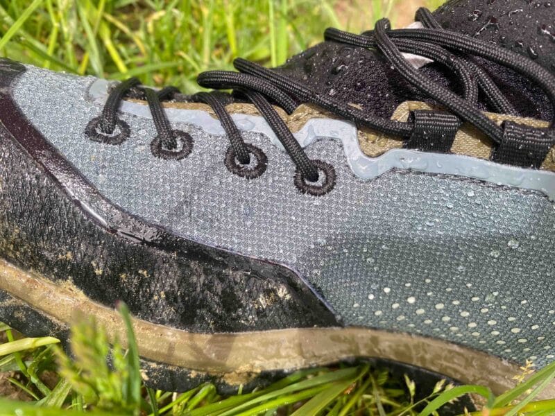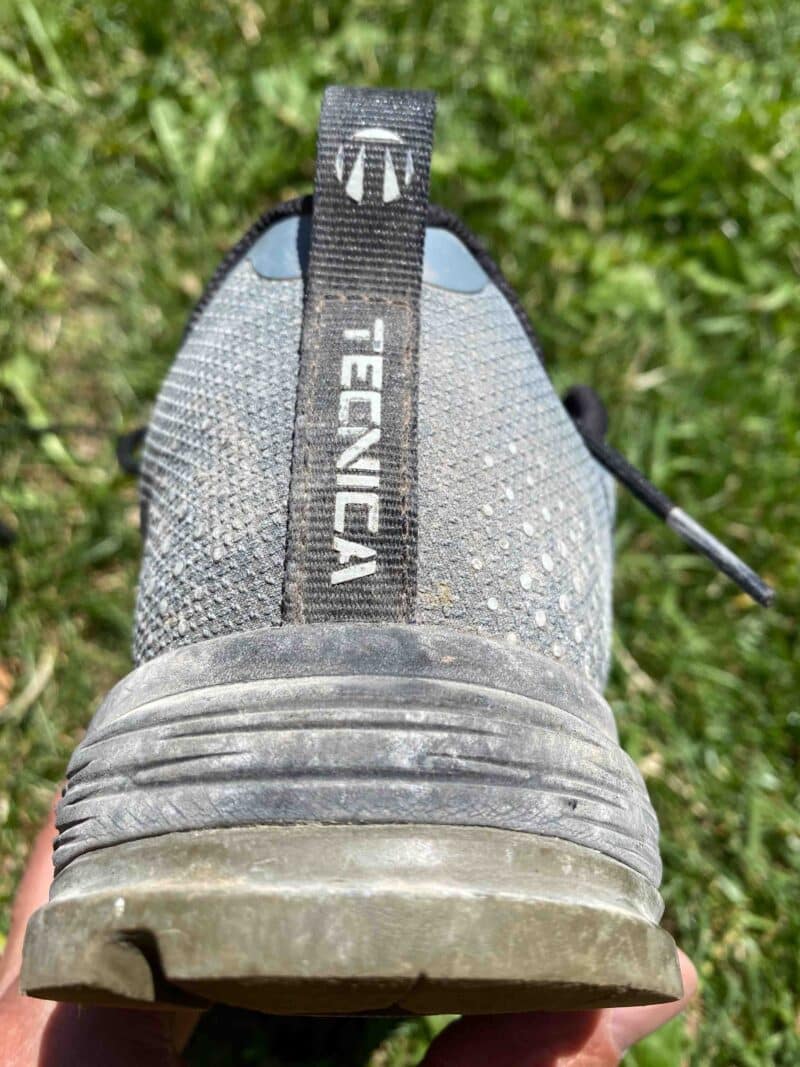 Le serrage par lacets passe par des œillets sur la partie basse puis deux passants au niveau du haut et pour finir par un double œillet qui permet de ne pas avoir de desserrage durant la journée. Les lacets coulissent facilement et garantissent un serrage aisé et ajusté. Si on a besoin d’aide pour enfiler vos chaussures, la bride de tirage arrière est assez ample pour laisser passer les doigts.