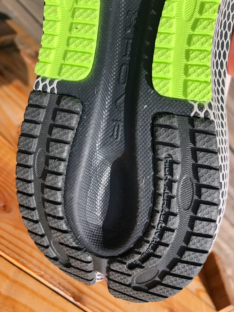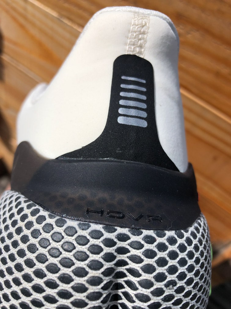 Sur la route, on trouve une chaussure bien amortie au niveau du talon, avec une filtration qui disparait presque totalement sous l’avant pied. On garde ainsi la possibilité de venir la chercher en fore foot pour accélérer. Le talon a été qualifié de « mœlleux ». On note un peu de roulis sur le dernier tiers de l’Under Armour HOVR Machina 3. Le drop est toujours de 8 millimètres. Cette chaussure permet de cumuler les kilomètres sans se poser de questions. La semelle renvoie peu d’énergie mais fait le job en matière de confort.